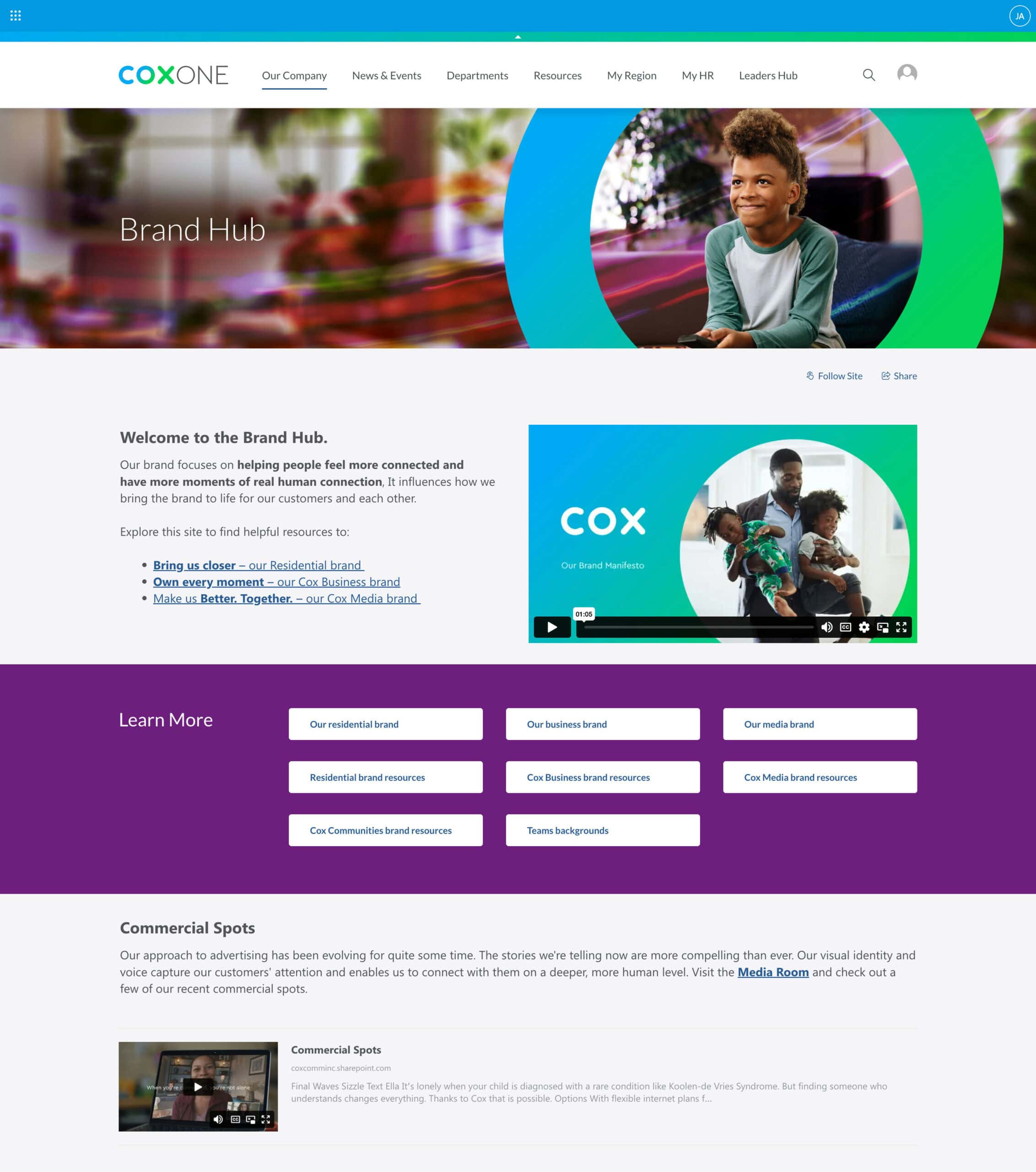 Resources for authors includes a highly visual brand hub. Screenshot courtesy of Cox Communications.