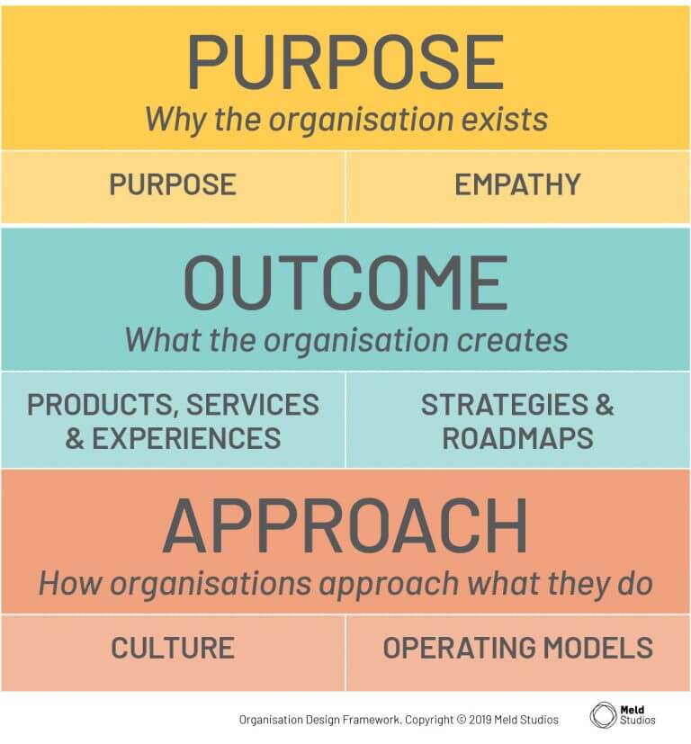 Meld believes that an organisation needs to be set-up and run well before it can deliver good experiences to its customers and employees. It must be clear on its purpose, the outcomes it expects and how it enables and supports its employees.